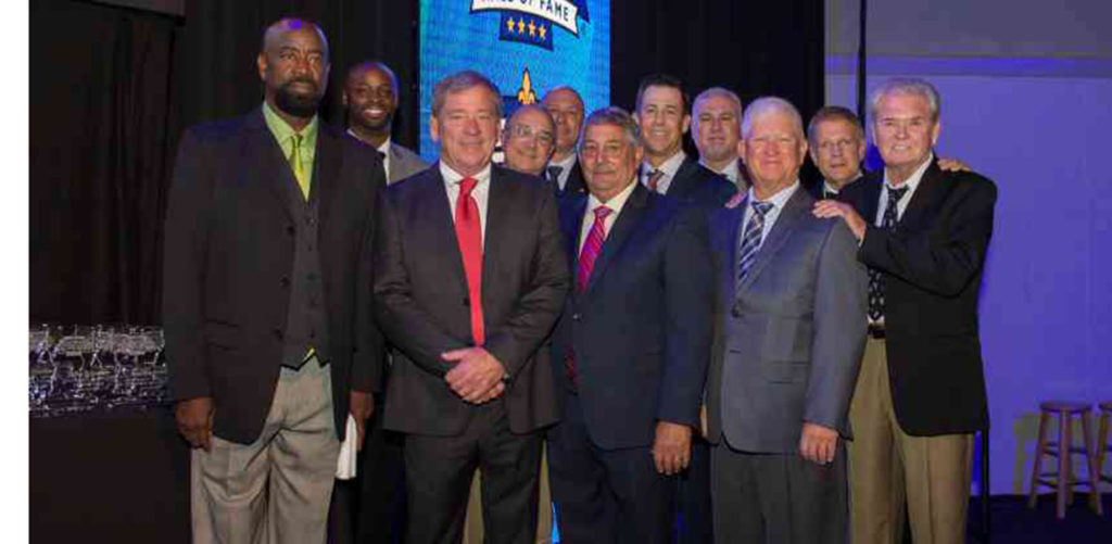 (Pictured L/R: Larry Wright, Reggie Wayne, Scooter Hobbs, Paul Varisco (father-in-law of Dave Dixon Leadership Award winner Steve Gleason), P.B. Candies…