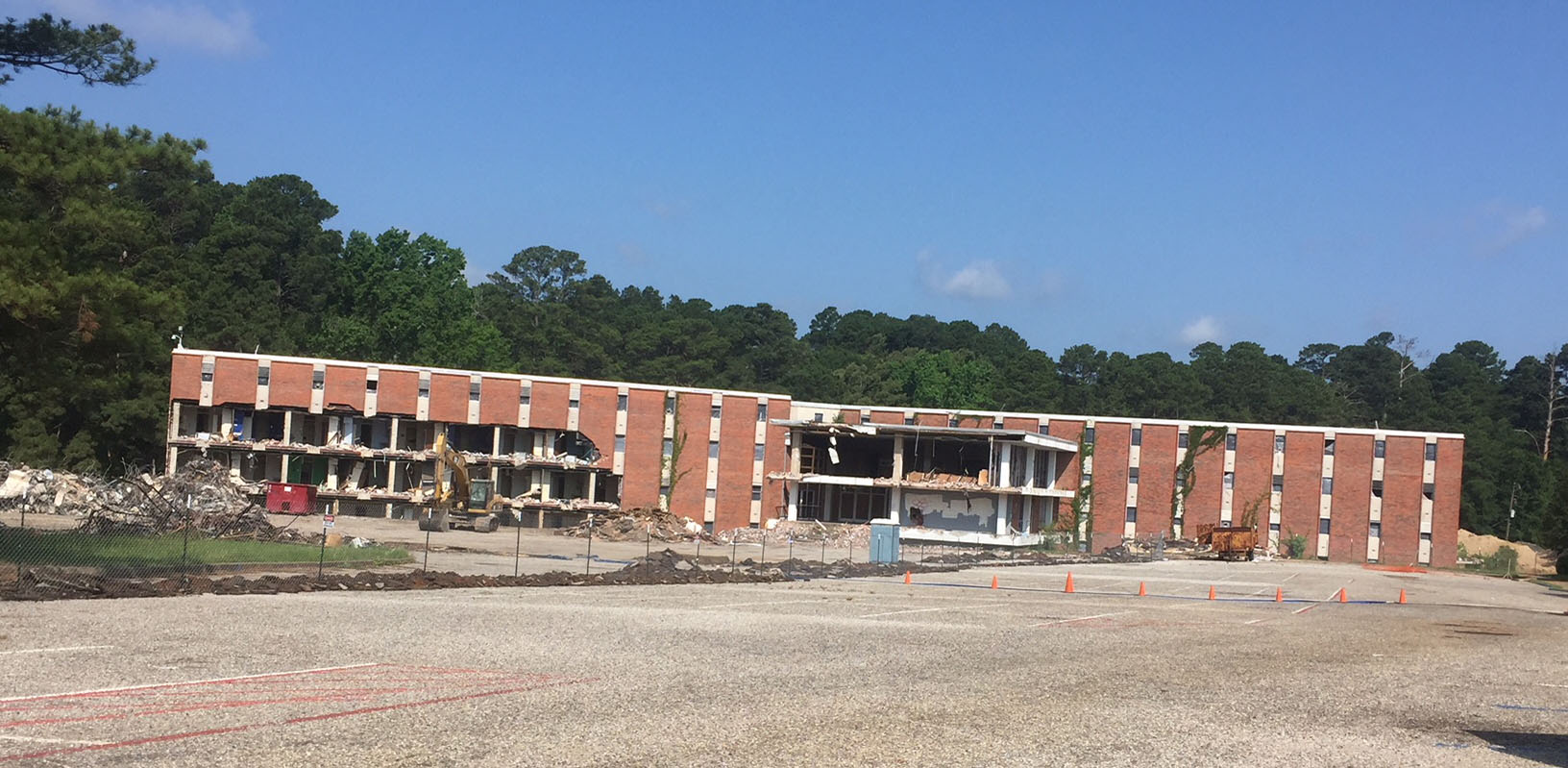 Hutcheson is a four-store dormitory (I’m counting the unforgiving basement) on the Louisiana Tech campus that is now the shell of its former self, and not a minute too soon.