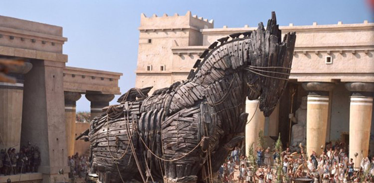 On April 24, 1184 B.C., the Greeks enter Troy using the Trojan Horse (traditional date): This is the “traditional date” because no one thought, at the time, to grab some papyrus and a quill and jot it down. But you know those zany Greeks… (Alexandros: “Did they pull us into the city Tuesday or Wednesday?” Kostas: “How am I supposed to know? I was driving. I think it was Friday. Ask Vagellis.”) And if the Troy folk were stupid enough to pull a giant wooden horse inside the city walls and not think to check it out — as if Santa Cicero had brought it — they deserved to be conquered. (And can you hear them planning this back in Greece? “Dimitri, it’ll never work! But maybe…maybe…it’s just stupid enough.. let’s give it a try! Somebody go get me a really big piece of wood!”