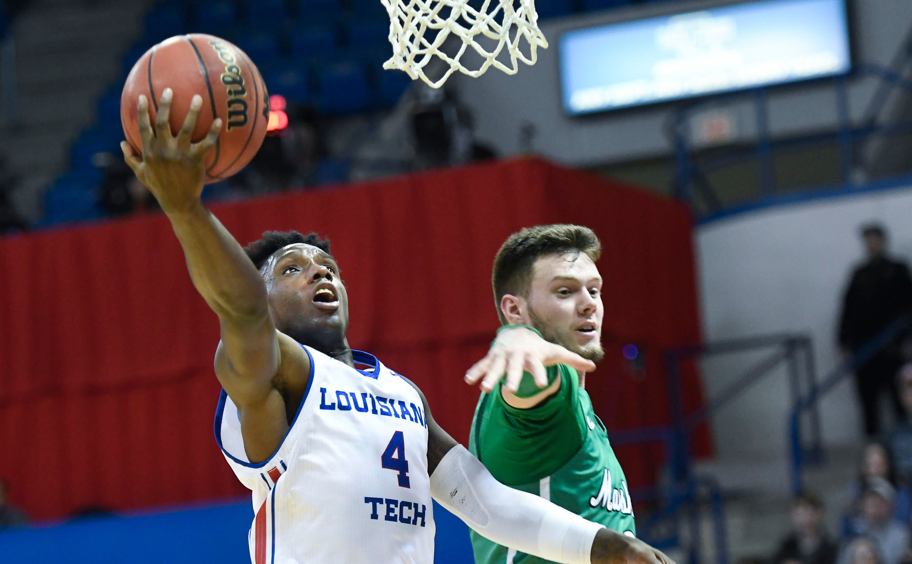 RUSTON — Marshall’s Thundering Herd led for just 47 seconds against Louisiana Tech Thursday night in the Thomas Assembly Center, but unfortunately for the Bulldogs, most of those seconds were in the final minute when Tech found itself down by a point with 55 seconds left and down by 2 with only 12 seconds left.